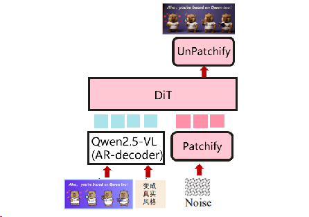 用于图像生成和编辑的流行模型。主要的视觉生成模型与结构相似,如Flux。(例如: qwen-image)