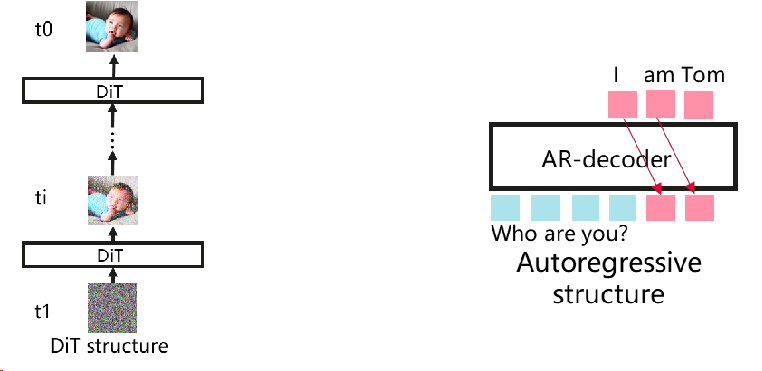 | 特性 | 自回归(AR) | DiT(Diffusion-based Iterative Transformer) |